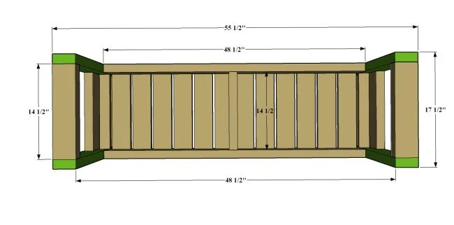 C1 - 2 – 1 x 4 x 14 1/2″ horizontal support pieces between legs 2'5''