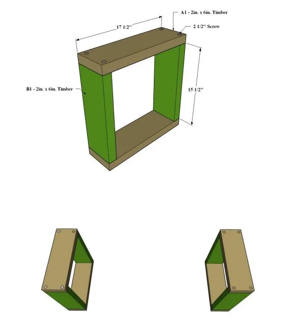 First, we stick the A1s(2 x 6 x 17 1/2″ ), which are the lower and upper support parts of the B1 legs, to the right and left ends of the B1(2 x 6 x 15 1/2″) parts so that there is no gap.