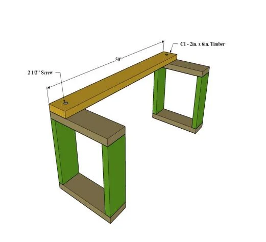 Now, we place the C1 part, which is our top board, starting from the right or left side and stick it. We screw the C1 board to the A1 parts using one or (two screws if you want it to be stronger) from the right and left ends