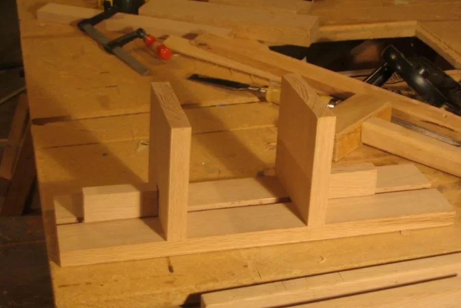 Once you're ready, put a bit of wood glue in the notches in the bookends, attach the guides, and clamp for a while.