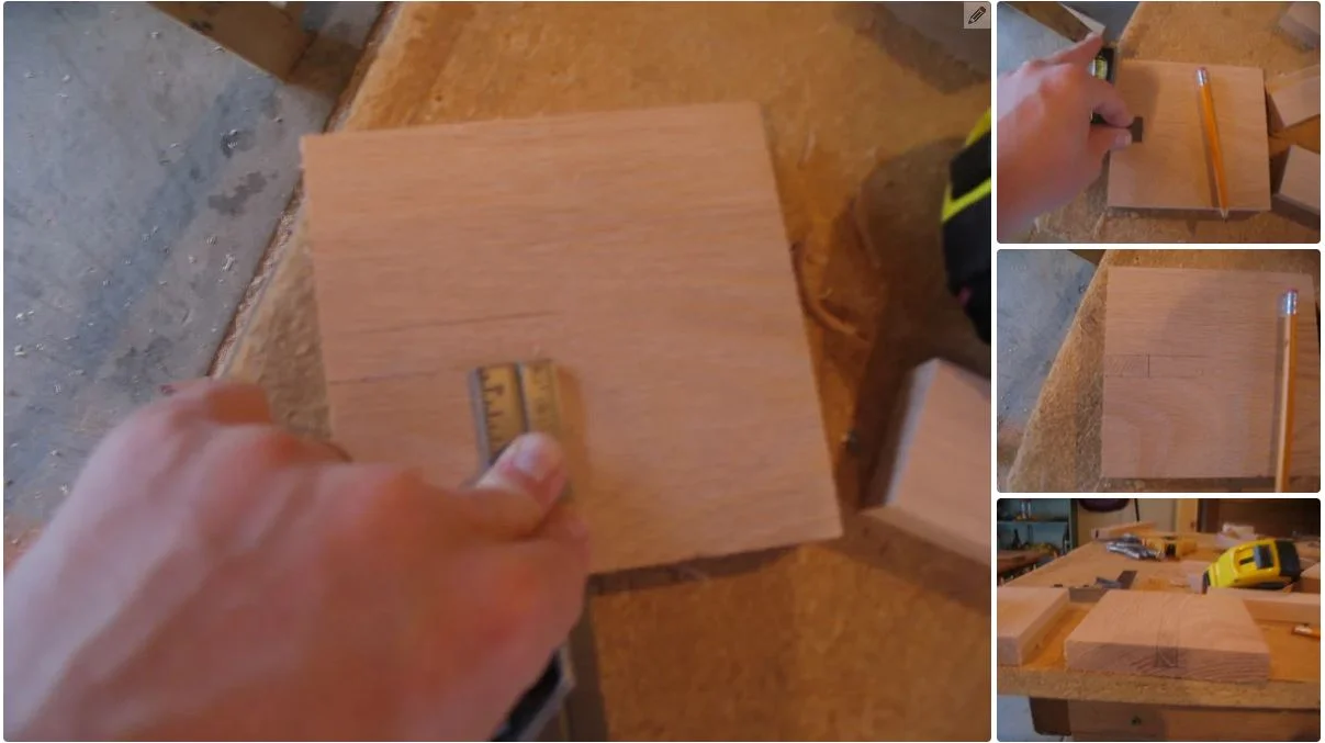 Use the combination square to find the depth of the notch. Mark this across the top of the guide. You should now have marks that outline the pin that will go into the notch.
