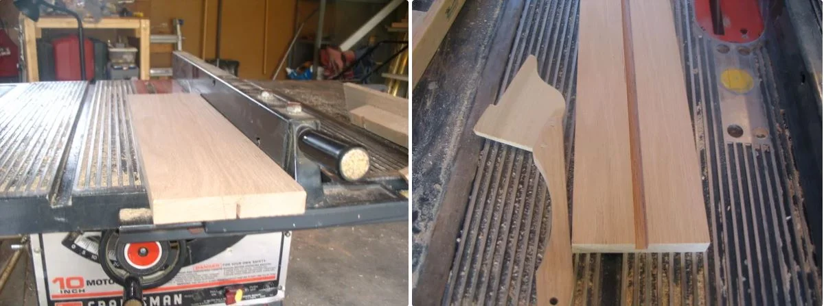 Place the base face down on the table saw and adjust the fence so that the groove line farthest from the fence is lined up to the saw blade.