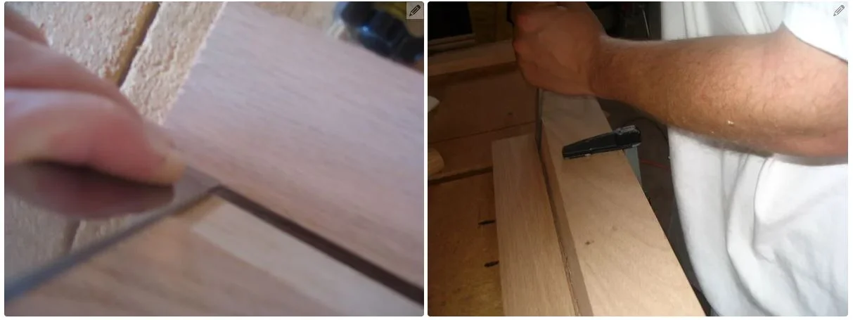 The picture shows the pieces already finished. I forgot to take a picture before I started working on it. I'm not expecting the wood to come with the pins and grooves already in them.