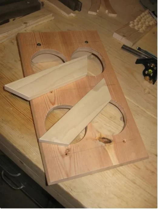 I cut three pieces to the same length as the width of the board and just to make it a little fancy I cut the ends on a 45 degree angle.